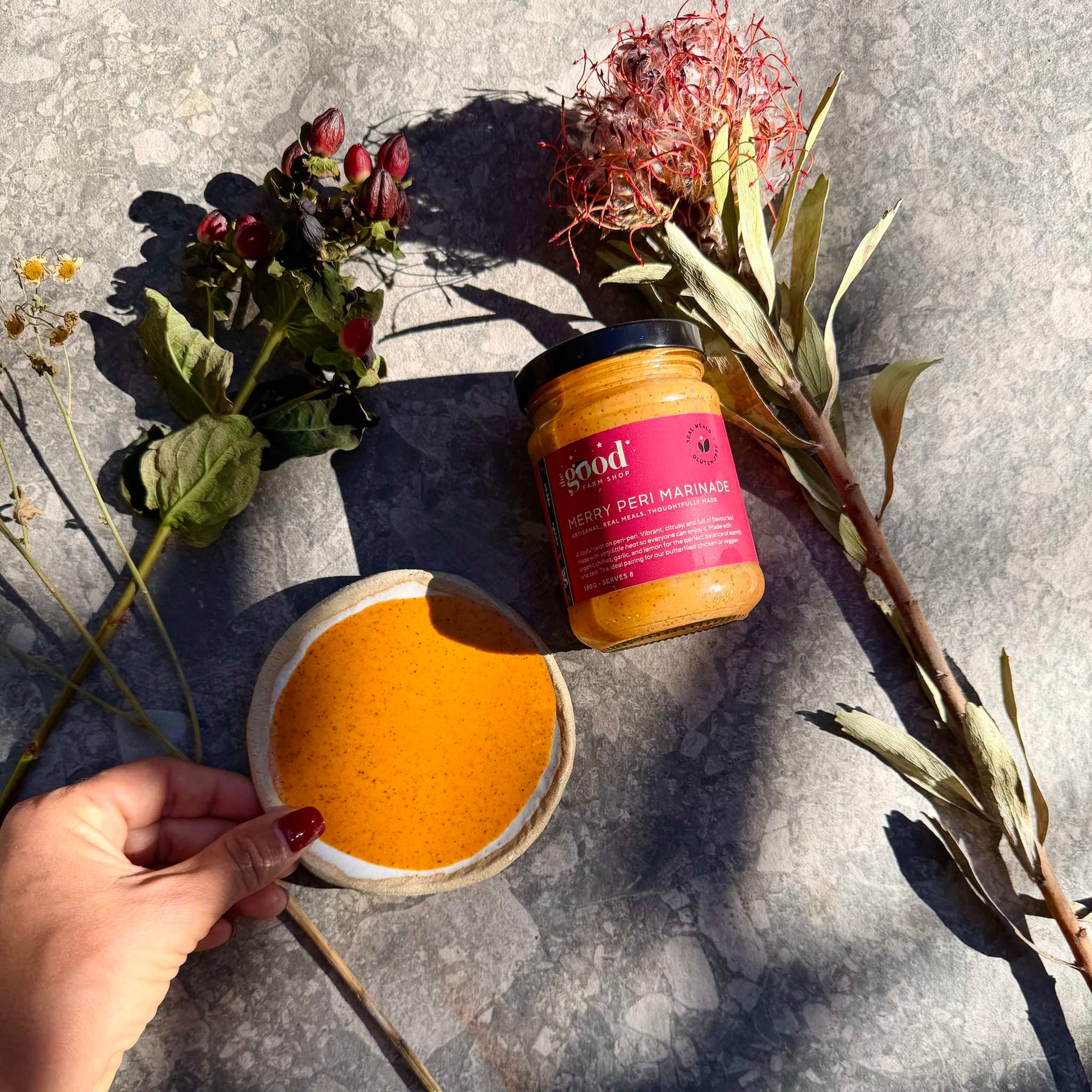 A joyful twist on peri-peri. Vibrant, citrusy, and full of flavour but made with very little heat so everyone can enjoy it. Made with organic chillies, garlic and lemon for the perfect balance of warmth and zest. The ideal pairing for our butterflied chicken or veggies.